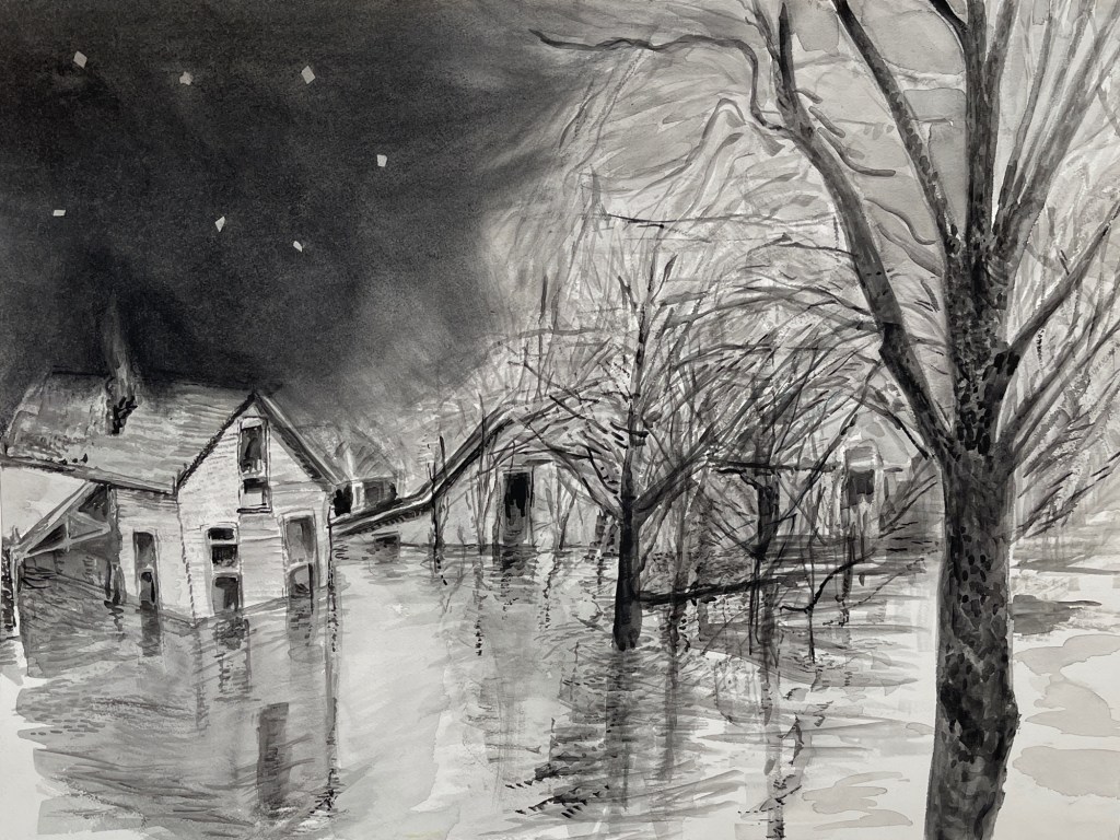 The water was rising each time the dreams restarted. Neighbors’ houses were floating by. Big trees, tree houses, and forts were floating by. I was running and climbing higher and higher as water lapped at my feet and legs as it tried to pull me under the water.